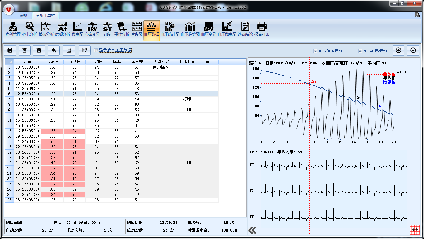 軟件分析功能全面:除了基本的心率失常、ST段、起搏分析功能外,還具備模板分析、房顫分析、心率變異(HRV)分析、QTc分析、心率震蕩(HRT)分析、T波電交替(TWA)分析、心室晚電位分析、心率減速力分析、心電向量分析、色譜圖等諸多研究功能,同時軟件提供特色編輯手段,幫助用戶輕松完成分析工作。